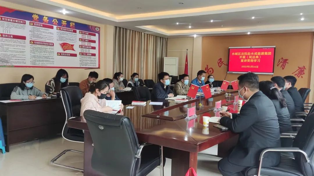 5月24日,水城區(qū)人民法院聯(lián)合貴州水成能源(集團(tuán))有限責(zé)任公司開展“普法進(jìn)企業(yè)”活動,專題宣講《中華人民共和國民法典》,發(fā)放民法典讀本,現(xiàn)場解答法律問題。